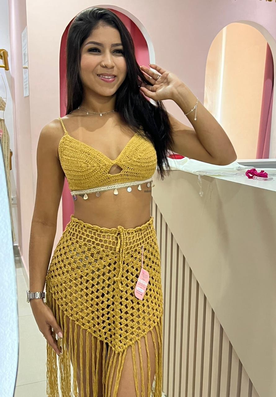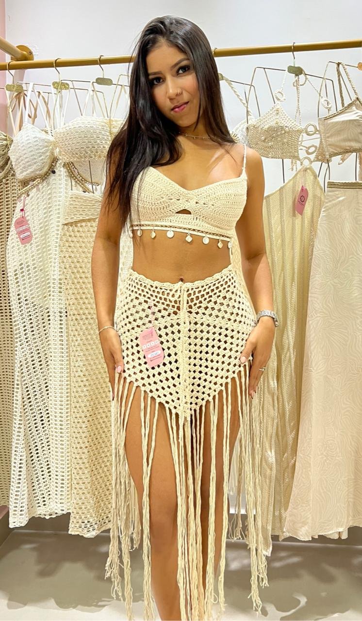 CONJUNTO DE 3 PEÇAS SENDO 1 CROPPED 1 SAIA 1 CALCINHA. TAMANHO ÚNICO VESTE DO 36 AO 40 BASTA REGULAR O CROCHÊ NA SUA MEDIDA